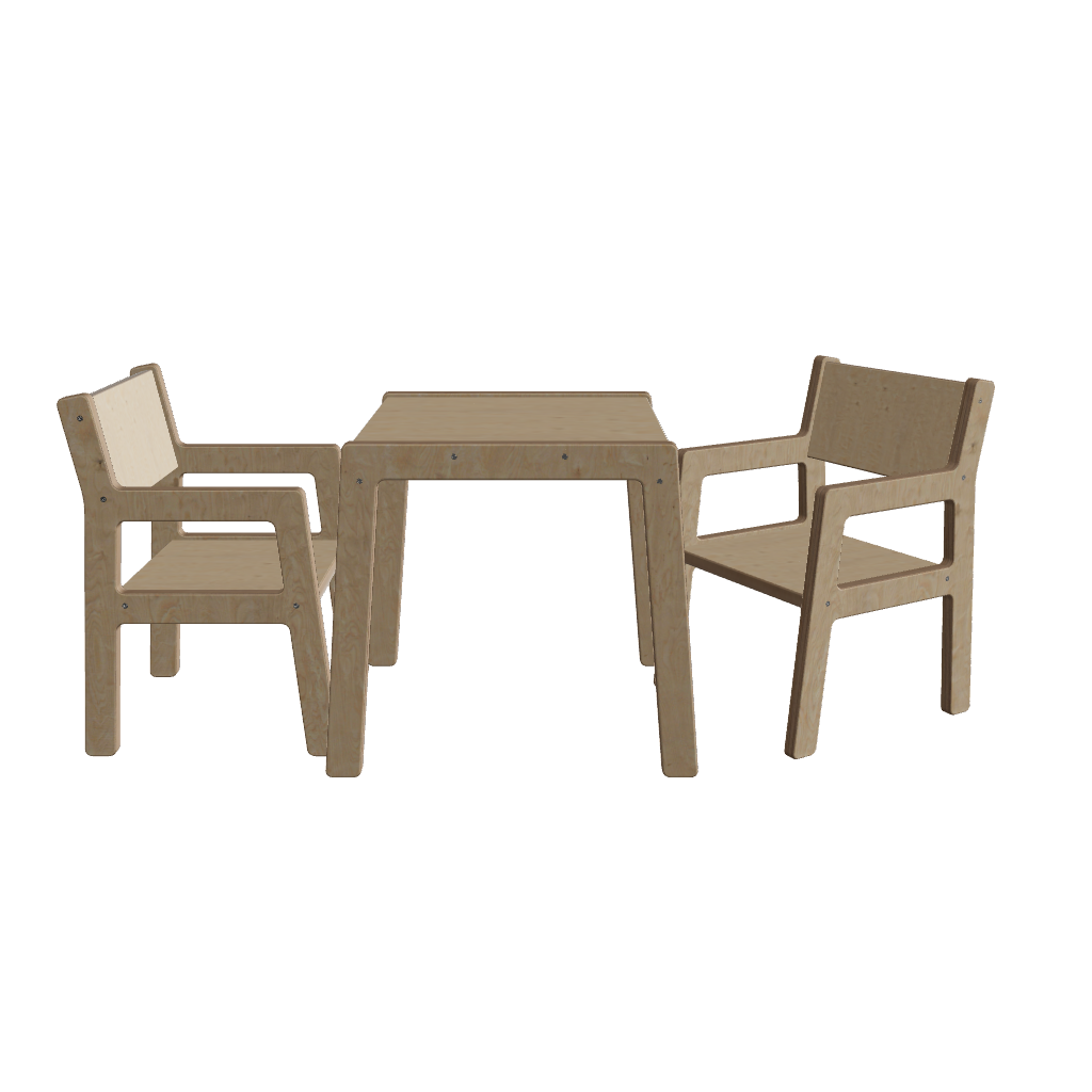 Set de meubles enfants en bois 1-3 ans | Kiddo table + 2 chaises - naturel